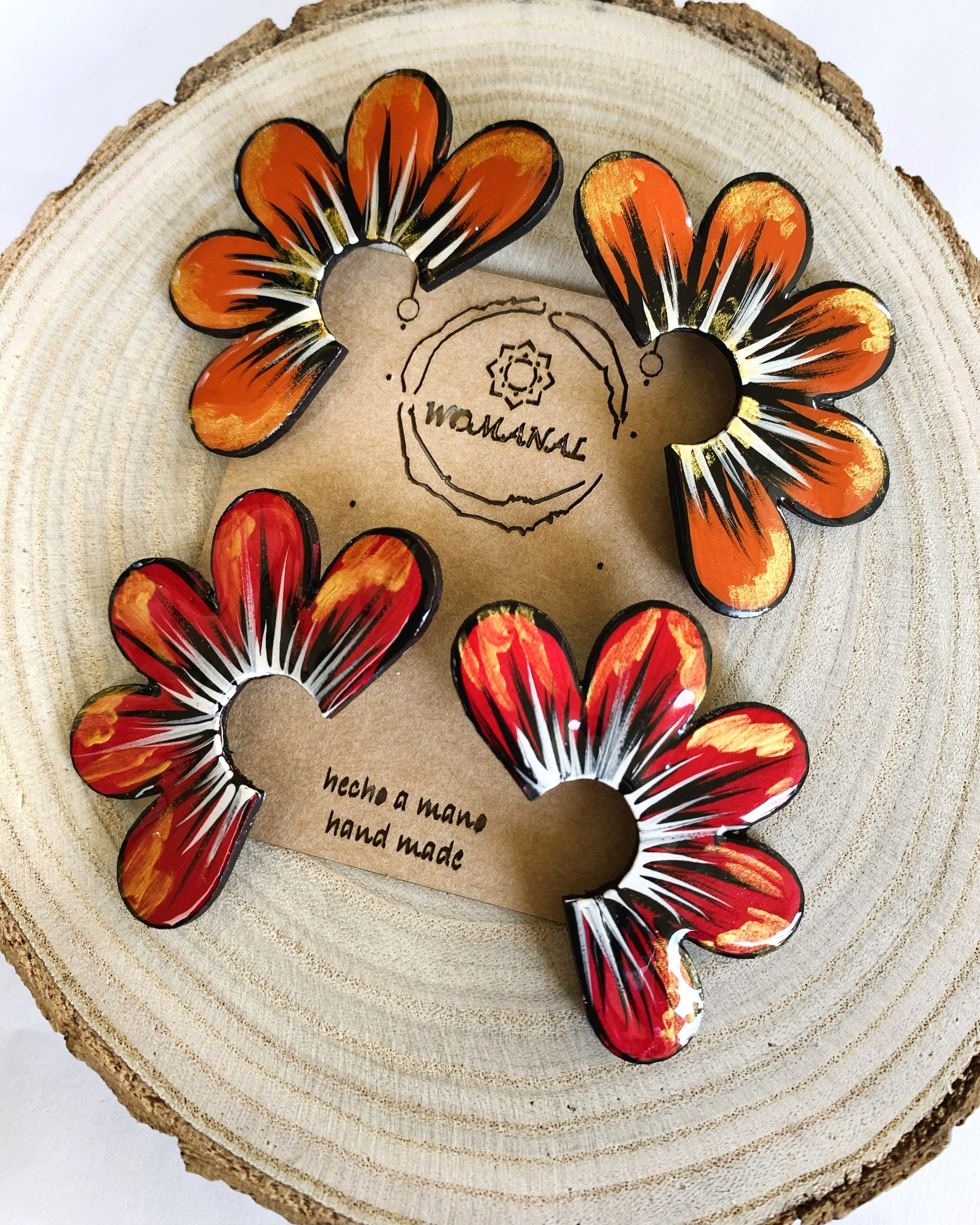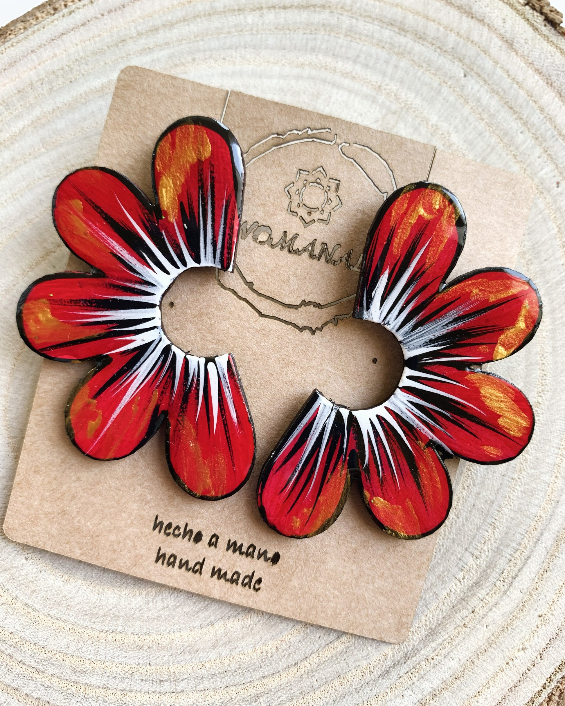 Los pendientes “Pétalos de Fuego” combinan el arte de la resina con el color vibrante de la pintura, dando vida a una pieza llena de fuerza y vitalidad.